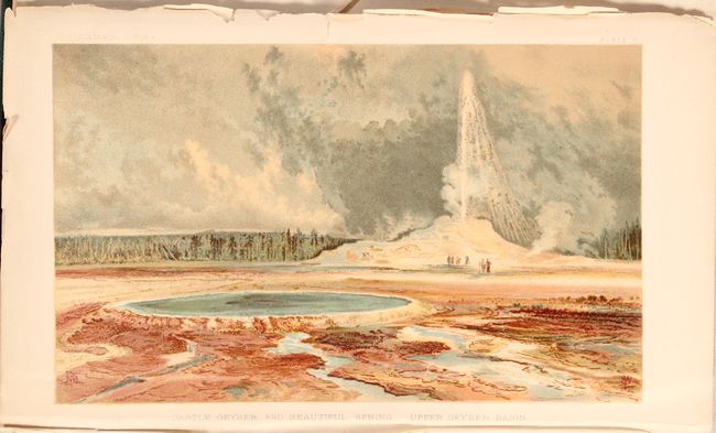 The volume contains the geological reports of W. H. Holmes, the thermo-hydrological reports of A.C. Peale, and the topographic reports of Henry Gannett. There are 117 black and white and sepia tinted figures and plates illustrating their findings. Unusual for a report of this era, there are 4 striking chromolithographs showing Mammoth Hot Springs, the Grand Canon of the Yellowstone River, Castle Geyser, and Great Blue Spring. Octavo, 503 pp. Hardbound in brown cloth with gilt titles on spine.