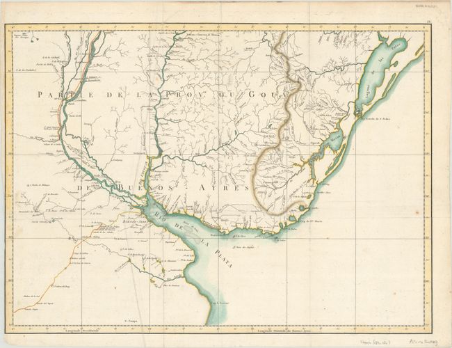 These uncommon copper-engraved maps are from De Azara's important narrative of the discovery and conquest of Paraguay and the Plata River. De Azara went to South America in 1781 as one of the commissioners to settle the boundary between the Spanish and Portuguese possessions. He remained there for twenty years and became an authority on both the natural and political history of the region. These maps were drawn specifically to illustrate his work, Voyages dans l'Amerique Meridionale, and are filled with exceptional detail, not found on any other maps of this period. The maps follow the Parana, Uruguay, and Paraguay Rivers from the Rio de la Plata through parts of present-day Argentina, Uruguay, Paraguay, Brazil and Bolivia.