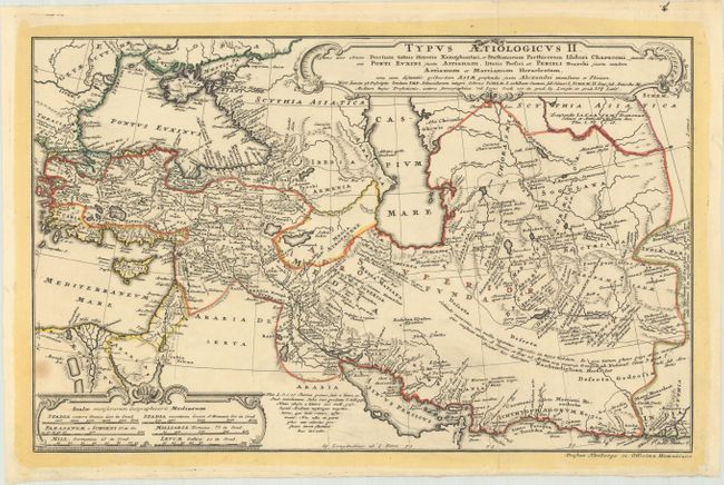 This uncommon historical map extends from Turkey and the Black Sea to parts of India, showing the region of the Seleucid Empire under the reign of Antiochus II Theos. It features decorative title and distance scale cartouches.