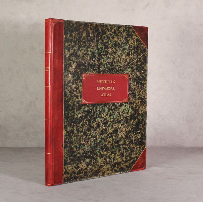 Folio. Hardbound, frontispiece, pictorial title page, table of contents, 72 hand-colored maps. Rebacked with new title label on original marbled boards and red leather tips. This edition was published by S. Augustus Mitchell, NE corner of Market & 7th Streets. An increasingly difficult to find atlas.