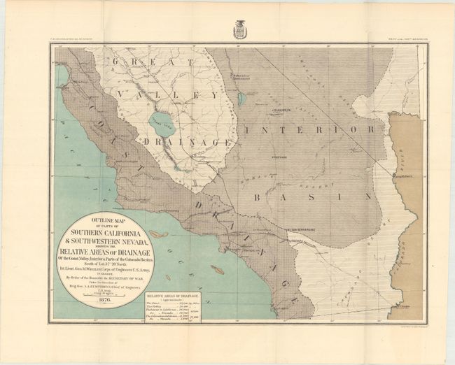 Topographical Sketch Showing the Outward and Inward Route of a Party, While Examining the Practicability of a Diversion of the Colorado River for Purposes of Irrigation..., black & white (19.1 x 14.8"). This highly detailed lithograph covers the region from Los Angeles to Needles and north to the Las Vegas area, documenting the expedition's route. As the title suggests, the expedition's task was in understanding the viability of rerouting water from the Colorado River to southeastern California. In addition to highlighting the expedition's route, the map shows highly detailed topography and the early road system. Condition: There is an old tape stain along the lower right fold and one tiny hole with minor loss of image. (B+)