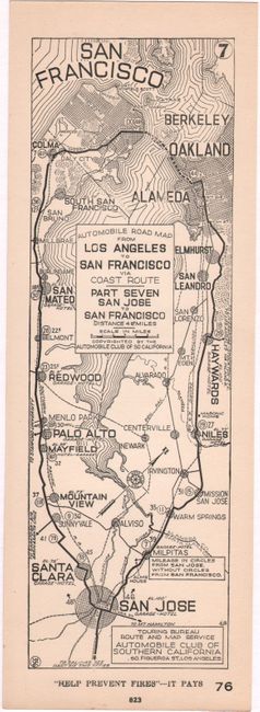 This large set of 37 cards covers the coastal route from Los Angeles to Vancouver with excellent detail of the evolving road system. Additional maps show several "inland" routes including Vacaville to Red Bluff, Modesto to San Francisco, and Portland to The Dalles to name a few. The set includes one duplicate of the Fresno to Modesto map. These individually numbered single-card maps were precursors of the AAA “Trip Tik” travel maps. Most are dated 1923 and many have printed information on the verso regarding “Official Hotels” (only 7 shown for Los Angeles) and “Official Garages.” Housed in the original printed envelope.
