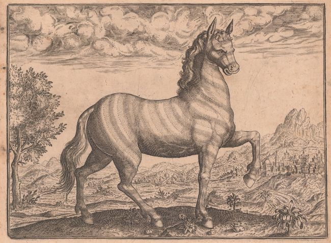 A. Die Neundte Figur/ von dem Thier Zebra, circa 1597 (7.0 x 5.1"). This striking engraving of a zebra is likely the first ever printed engraving of the animal. On a sheet of German text. Condition: Lightly toned with scattered foxing and soiling that are mostly confined to the area outside the engraved image. (B+)