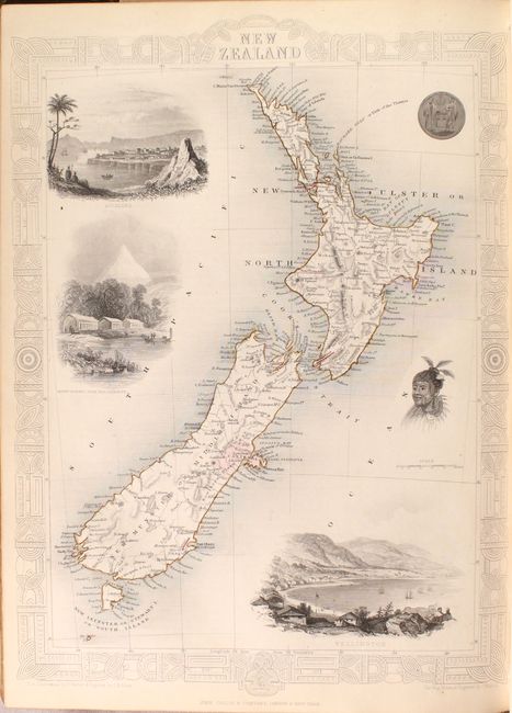 This scarce and very desirable folio atlas is one of the last "decorative type" atlases to be published. Edited by R. Montgomery Martin and published by John Tallis & Co., it is sometimes called the "Tallis Atlas" (as seen on the front cover). This complete atlas contains a frontispiece of the Great Exhibition, 81 maps, 2 charts, and related text pages interspersed throughout. The maps not only provided up-to-date geographical knowledge, but also used vignette views within the map's design to show the native people and their occupations, cities, and points of interest. The maps hark back to a cartographic tradition from the Dutch mapmakers of the seventeenth century with finely engraved decorative borders. Of particular interest are: