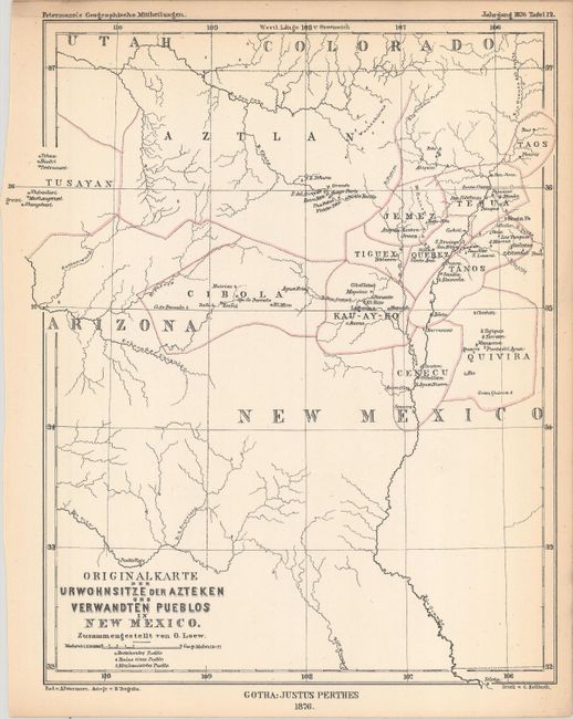 B. Originalkarte der Urwohnsitze der Azteken und Verwandten Pueblos in New Mexico, (8.1 x 9.9"). Condition: Light toning along the sheet edges. (A)