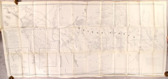 This map and report are the final documentation of the boundary between the United States and Mexico. This historic and informative map shows the territory acquired under the treaty by Gadsden in 1854. It covers the region between the 30th and 34th parallels and extends from Los Angeles to El Paso. The map also delineates two disputed boundaries, namely "Messrs Bartlett and Counde's Line for Southern Boundary of New Mexico…" and "Boundary of New Mexico marked on the Treaty Map (Disturnell) about 8 miles North of El Paso". Insets of "Sketch of the Port of San Diego, surveyed by U.S. Boundary Commission in 1849 and 1850", "Table of Reference. Latitudes and Longitudes of Principal Points" and "Profile of Country from the Rio Grande to the Gulf of California; and from Rio Grande to the junction of the Gila and Colorado Rivers." A remarkable and very large cornerstone map of this important boundary treaty. Bound with the original 50-page report that also includes That Part of Disturnell's Treaty Map in the Vicinity of the Rio Grand and Southern Boundary of New Mexico (11.2 x 8.8"), which further illustrates the disputed region. Thick octavo. Bound in contemporary full leather with numerous other documents, some with maps, including Fuller’s survey of the Rio Grande.