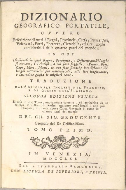 This work includes Remondini's uncommon reduction of Isaak Brouckner's map of the world, Carte Generale du Globe Terrestre.... It features an extravagant collection of Northwest Passage theories, including one based on the infamous expedition by Admiral Bartholomew de Fonte. In 1708, a newly discovered account of the Spanish Admiral's 1640 discovery of the passage was published. That account was actually a journalistic hoax, but thereafter the account was changed and elaborated upon by numerous mapmakers. This map shows one Northwest Passage from Baffin Bay to exit at roughly Alaska, and another from the St. Lawrence through the Great Lakes and out via the massive and utterly spurious Sea of the West ( Mer ou Baie de l'Ouest). The large fictional lakes from De Fonte's account include Velasco, de Fonte, and the strange archipelago of St. Lazare. In the North Pacific, the routes of the Russian expeditions and the Manilla/Alcapulco galleons are charted. In the South Pacific, the partial coastlines of Australia and New Guinea are shown connected, and both New Zealand and Tasmania are shown as single coastlines. The map is engraved in an unusual and simple style, and titled on a banner style cartouche. Also included in volume one is a double-hemispheric world map entitled Mappamondo Overo Descrizione del Globo Terrestre... and also reflects a lack of knowledge in northwestern North America.