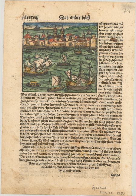 Sebastian Munster (1489 - 1552) was one of the three most renowned cartographers of the sixteenth century, along with Mercator and Ortelius. Munster's Geographia and Cosmographia Universalis were two of the most widely read and influential books of the period. His editions of Ptolemy's Geographia, published between 1540 and 1552, were illustrated with 48 woodcut maps, the standard 27 Ptolemaic maps supplemented by 21 new maps. These new maps included a separate map of each of the known continents and marked the development of regional cartography in Central Europe. The antique geography was a prelude to Munster's major work, the Cosmographia, which was published in nearly 30 editions in six languages between 1544 and 1578 and then was revised and reissued by Sebastian Petri from 1588 to 1628. The Cosmographia was a geographical as well as historical and ethnographic description of the world. It contained the maps from the Geographia plus additional regional maps and city views with nearly 500 illustrations which made it one of the most popular pictorial encyclopedias of the sixteen century.