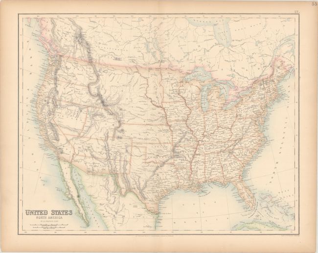 B. United States North America, by G.H. Swanston, circa 1858 (20.6 x 16.3"). Uncommon map with interesting western territories. Dakotah incorporates the territory between Minnesota and the Missouri River. The large Nebraska Territory has its western border in the Rocky Mountains adjoining Washington, Oregon and Utah. Nevada is shown with its eastern border nearly on the shores of the Great Salt Lake, while Utah incorporates most of present-day Colorado with its eastern boundary adjoining Kansas and Nebraska. Arizona is shown in its Confederate Territory form located below New Mexico Territory. The map shows particularly good topographical detail. Condition: Light toning confined to the sheet edges. (A)