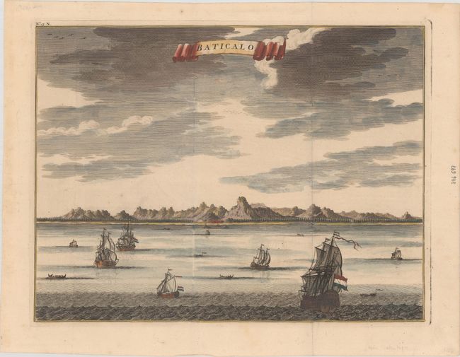 A lovely view of Batticaloa with numerous ships in the foreground. Valentyn was a prominent historian of the Dutch East India Company who is best known for Oud en Nieuw Oost Indien, his vast illustrated account of the Dutch trading empire in Asia. He twice traveled to the East Indies and served as Calvinist minister to Ambon between 1686 and 1694. In preparing this monumental work, he was given privileged access to the previously secret archives of the VOC, containing transcripts and copies of important earlier Dutch voyages.