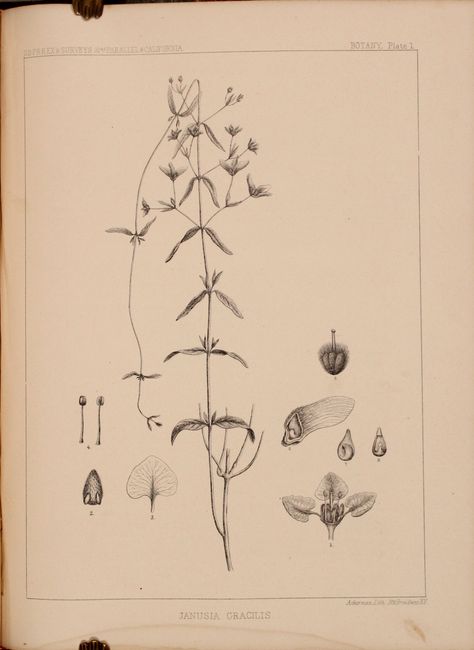 This is volume VII of the monumental surveys used for the planning and design of a railroad between the Mississippi River and the Pacific Ocean. These surveys were instrumental in documenting the unique natural history, biology, geology and ethnology, in addition to the geography of the western U.S. The report contains 8 color lithographic views, 43 paleontology, botany and geology plates, and a pair of maps. The first map, Geological Plan of the Coast Range of California from San Francisco Bay to Los Angeles (11 x 16.75"), is a colorful geological map employing delicate hand coloring to reflect geological knowledge. The eight geological types are color-coded per the legend at left according to the surveys of the U.S. Pacific Railroad exploration. The map contains interesting details regarding watersheds throughout, especially near the Bay of Monterey. The Kern Lakes are depicted. In Southern California, Los Angeles, Santa Barbara, San Luis Obispo, and more cities are located. Prepared to accompany the report of Thomas Antisell, M.D., Geologist of the Expedition. The other map, Geological Plan and Section from the Rio Grande to the Pimas Villages (23 x 8.25"), also uses attractive hand color to delineate 10 different geological types found along a stretch of land from El Paso to Maricopa Wells. The tracks of Lt. John G. Parke, of the Topographical Engineers are shown, as is the location of the beautiful Mission San Xavier del Bac near Tucson. The map is also shown as a profile in the upper margin. 399 pages. Quarto, rebound in quarter faux black leather over marbled boards with gilt title on the spine.