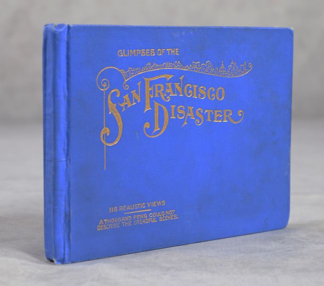 The map is still bound to the front of Glimpses of the San Francisco Disaster published by Laird & Lee in Chicago with 116 photographic illustrations of the "Startling, Realistic Views of the Terrible Catastrophe." Oblong octavo. Hardbound in blue cloth with gilt title on the front cover.