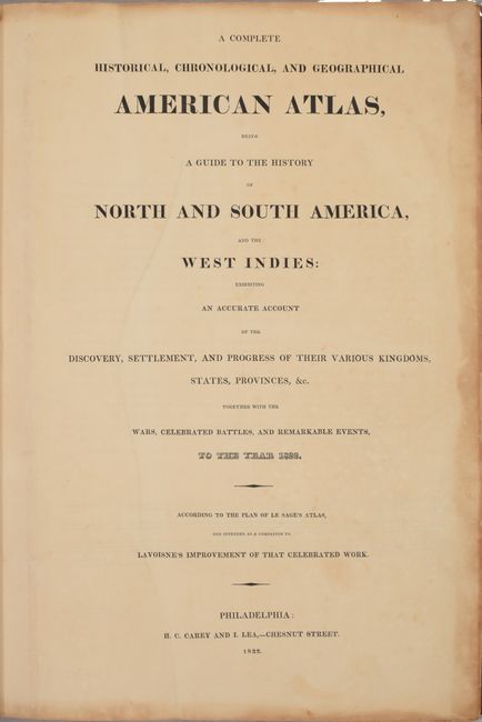 This attractive and complete atlas was issued at the beginning of the golden age of American cartography in Philadelphia. It includes all 53 called for plates with maps and tables of North America, South America, the United States and the West Indies. Following Le Sage's model, each of the maps is surrounded by text including economic, political, social and historical data. Of particular interest are the following maps: