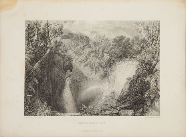 This two-volume set includes 118 (of 120) superb engravings after J. M. W. Turner. An English painter, Turner is known for his Romantic landscape painting. Turner is credited as an artistic genius who elevated landscape painting with his ability to "paint light," which make his works particularly suitable for engraving. Each steel-engraved plate is accompanied by a page of descriptive text featuring historical and critical remarks, written by William Cosmo Monkhouse, a British poet and critic. The plates include a portrait of Turner, views of Venice, ships at sea, mythological figures, and castles in England. The plates of The Death of Nelson and The Battle of Trafalgar are missing. Published by D. Appleton and Company in New York. Large folio. Hardbound in quarter leather spine and tips over black cloth boards with raised bands and gilt titling on spine.