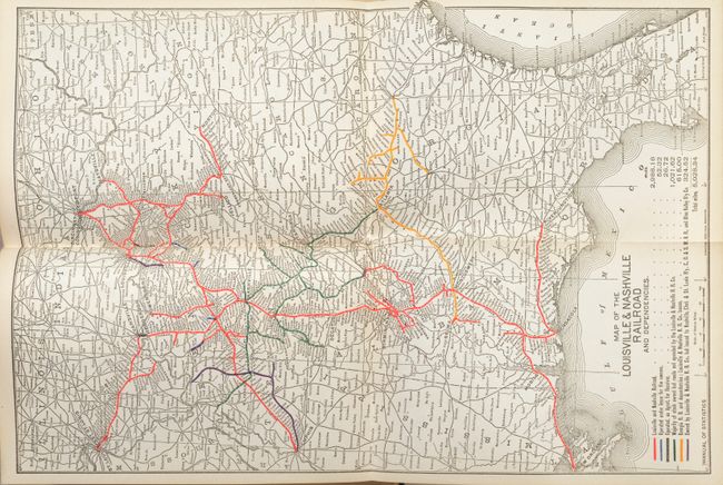 Published by Charles Nicoll in New York, this manual provides brief descriptions and financial overviews of companies in the railroad, industrial, and agricultural sectors. 26 maps augment the 270-page section on railroad operators including maps of the Baltimore & Ohio, Rock Island, and Northern Pacific railroads to name a few. The majority of the maps are double-page (approximately 10.5 x 7.7" sheets), along with 6 single-page and 4 folding maps. This special edition was compliments of Pearmain & Brooks in Boston. 580 pages. 12mo, hardbound in green cloth with gilt title on front cover.
