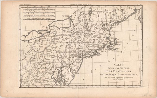 This very early map presents the northern part of the newly-formed United States. It covers the region from northern Virginia to Machasuzet Bay (present-day Maine), and westward to include Lake Erie. The map has good topographical detail, and it also includes numerous settlements, forts, and Indian villages. It locates Baltimore, Annapolis, Alexandria, New York, Boston, Ft. Halifax, and much more. There are four distance scales at upper left.