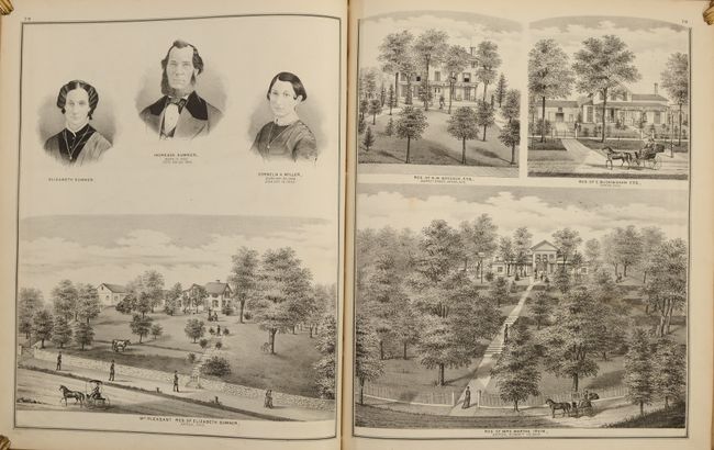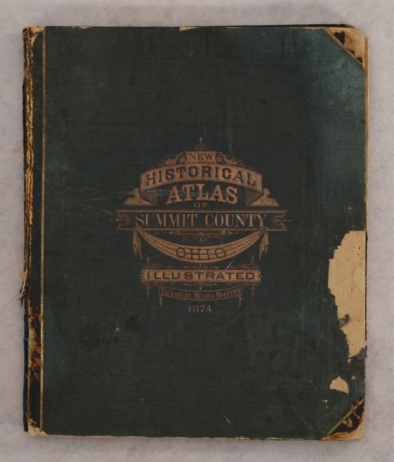 This uncommon atlas of Summit County, Ohio is complete with 27 township maps accompanied by an index map of the county, a folding map of the state of Ohio, and H.H Lloyd’s double-page Railroad Map of the United States. The township maps are incredibly detailed showing individual land ownership, farm houses, school houses, churches, mills, blacksmith shops, road, railroads, and more. Each map is followed by full-page and half-page illustrations of important farms, businesses, and prominent citizens making the atlas an overall excellent historical record. The atlas is completed by a history of the county, sketch of “prominent men and pioneers", and local advertisements. 139 pages. Hardbound in quarter black leather over green cloth boards with gilt title on the front cover. Published by Tackabury, Mead & Moffett in Philadelphia.