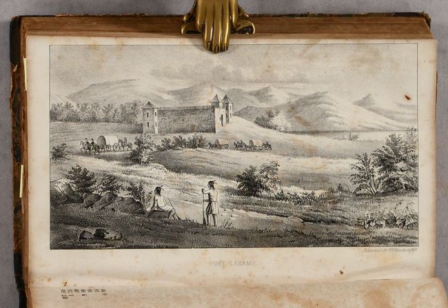 This thick octavo volume contains Major Osborne Cross’ report describing the first military expedition of the Oregon Trail (pages 126-244). Wagner-Camp notes that the report “presents a detailed description of the emigrant trail to Oregon with 36 lithographed views of scenes along the route from Fort Laramie to The Dalles." These lithographs are considered among the earliest views along the route. The list of illustrations calls for 35 plates, but there is an additional view of the Columbia River at The Dalles that is present in all editions. The plates, including 3 that are folding, are bound together as opposed to interspersed within the text as the list of illustrations indicate. 932 pages. Hardbound in quarter black leather with tips over marbled boards with gilt title on the spine.