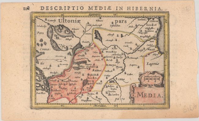 This matched set of 3 miniature maps were published in the section on Ireland from Bertius' geographical treatise. The maps depict Leinster, County Meath, and County Carlow in eastern Ireland. Each map is beautifully engraved with a strapwork title cartouche. While the majority of the maps for Bertius' geographical treatise were engraved by Jodocus Hondius Jr. after Mercator, the individual maps of England, Scotland, and Ireland were engraved by Salomon Rogiers after John Speed. Latin text on verso. Sizes vary slightly.