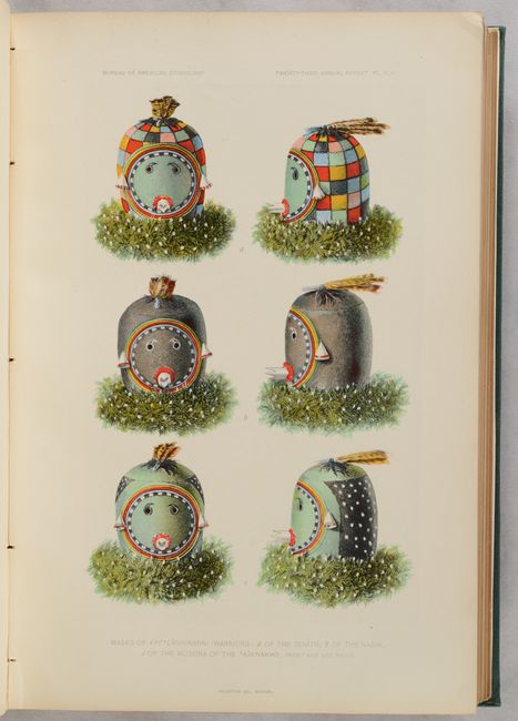 This is one of the most sought-after Bureau of American Ethnology annual reports. It contains a lengthy report by Matilda Coxe Stevenson titled The Zuni Indians, which was the most complete examination of traditional Zuni culture of the late 19th century since the pioneering work of Frank Hamilton Cushing. The volume includes 139 plates, including 47 attractive chromolithographs of Zuni dancers, kachinas, masks, ceremonies, altars, and other ritual objects, as well as reproductions of black-and-white photographs showing daily life and pottery. 634 pages, rebound in green buckram with title labels on spine.