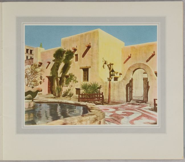 This souvenir booklet was issued for riders of the Southern Pacific Lines' "Sunset Route" between El Paso and New Orleans. Of interest for pictorial map collectors, it includes a terrific rare double-page cartoon map of the route. Although it is unsigned, it is done in the style of Ruth Taylor White's "Gay Geography." The rest of the book features 20 photographic illustrations of various views along the way, with accompanying text on the opposite page. Among the views are Big Bend National Park, Judge Roy Bean's The Jersey Lilly, the Spanish Governors' Palace, the Texas Capitol, "Industrial Houston," and New Orleans. Copyright is attributed to the Smith-Brooks Printing Co. of Denver, Colorado. Blue stiff paper covers with a view of the Alamo pasted to the front cover.