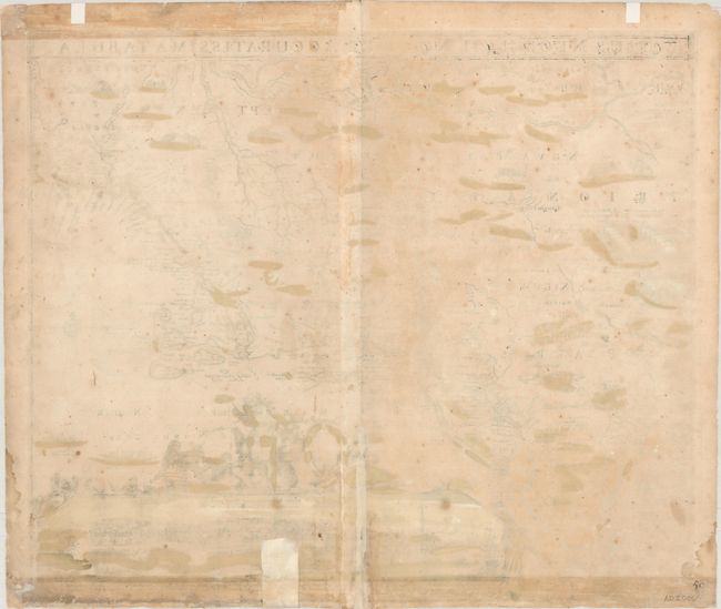 A dark, early impression with full contemporary color, light soiling, and dampstains entering the image at bottom. The bottom margin has been trimmed and there are archival repairs to a centerfold separation and a 1" tear at bottom and to small chips in the corners of the sheet. There is evidence of some old adhesive along the top and bottom edges of the sheet on verso, which no longer has any tackiness. There are small remnants of hinge tape on verso.