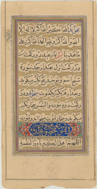 Lovely pair of sequential leaves written in Arabic text by the scribe Abu Bakr Jami in Isfahan. Each leaf is beautifully illuminated with burnish gold leaf. The highly polished paper is characteristic of that used for sacred texts. It was made by a separate guild and is sized with albumen and polished with an agate polisher.