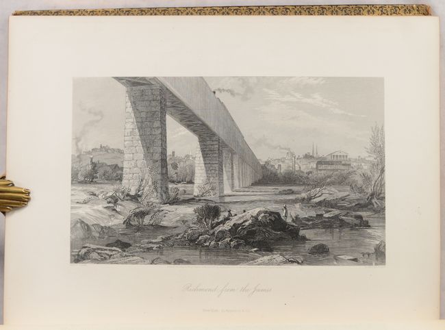 These are some of the most beautiful plate books on the United States and Canada ever produced. Volume I contains 24 fine steel engraved views and 284 wood engravings, many full-page including works by Thomas Moran, Harry Fenn, Granville Perkins, James D. Smillie and other important American artists of the 19th century. This volume contains works on Yellowstone, Yosemite, Richmond, Savannah, Charleston, Watkins Glen, Mackinac, the California Coast, the Golden Gate, and the terrific steel engraved frontispiece of Niagara Falls. Volume II contains 25 steel engraved views and hundreds of wood engravings, many full-page including works by Harry Fenn, Granville Perkins, A.C. Warren, F.O.C. Darley and others. Volume II contains New York City, the Mammoth Cave, the Northwest, Chicago, Milwaukee, the Canons of the Colorado, the Rocky Mountains, Philadelphia, Baltimore, Susquehanna, Boston, and much more. The great "New York, from Brooklyn Heights" is the steel engraved frontispiece. These matching volumes are in full presentation binding in full leather with fancy tooling and embossing with gilt, raised bands on spine. The front cover is stamped gilt with title and stylized artist's palette. All edges gilt (A.E.G.) Volume I - 568 pages, Volume II - 576 pages.