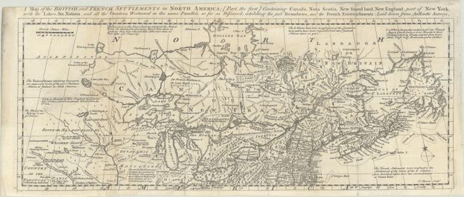 These scarce maps were issued to accompany a 4-part account of North America.  Both are filled with interesting historical and descriptive notes, as well as the locations of Indian tribes, villages, forts, and early settlements.  The first map covers Canada, New England, parts of New York and Pennsylvania, and the Great Lakes.  Issued just prior to the French and Indian War, it presents a decidedly British point of view with several interesting boundaries shown, including the Bounds of the Six Nations, the Bounds of Hudson Bay by the Treaty of Utrecht, and Northern Bounds of New England by Charter Nov. 3rd 1620, and which extends Westward to the Sth. Sea.