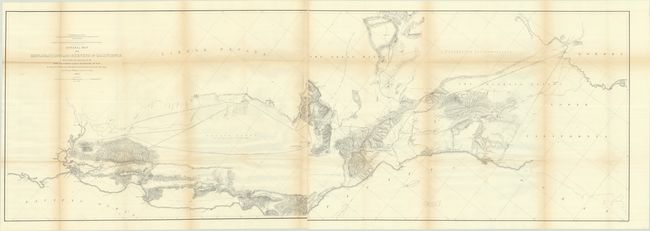 According to Wheat, this a "monumental document, and is noteworthy that with few exceptions, railroads today follow its 'Practicable Railway Routes'." This large and fascinating map depicts the early railroad surveying in California and covers the region from Bodega Bay in the north to below San Diego. The Practicable Route is shown from Ft. Yuma, Arizona to San Francisco and Martinez just across the bay from Benicia. Two parties explored these routes, one led by Lieut. R.S. Williamson and another by Lieut. J.G. Parke. With several parallel routes suggested in most areas, the parties commonly explored the route through the Los Angeles and San Bernardino area. Many towns and missions are located. There is good topographical detail, with some areas noted as not having been "explored instrumentally" while the "size and position are not accurately known" for Tulare Lake. On two sheets joined, as issued.