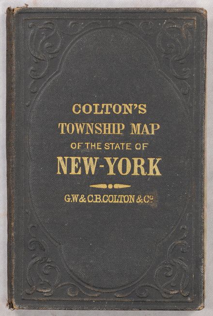 This large pocket map is dated 1852 in the copyright notice but has been updated to 1871 as indicated in the title. The map is filled with detailed information including county boundaries, villages, towns, roads, canals, and a large number of named railroads. A table of "Statistics of Population" at upper left indicates a population increase of 1.4 million people between 1840 and 1865, a remarkable 58% increase in only 25 years. Decorated with an elaborate vine and floral border. Drawn by George Colton and engraved by J.M. Atwood. Folds into original brown cloth boards (3.7 x 5.7") with gilt titling and embossed elements.