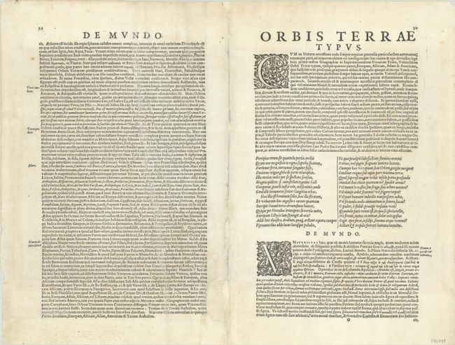 An elaborate strapwork border surrounds this beautiful double-hemisphere map, and an armillary sphere and 32-point compass rose are tucked between the hemispheres. Rumold Mercator based this map on his father's great world map of 1569. The North Pole is depicted as a landmass surrounding a sea from which four rivers radiate and there is a well depicted Northwest Passage. The huge Terra Australis is shown as a part of Tierra del Fuego, and the lands of Lucach, Maletur and Beach (from the travel account of Marco Polo) are noted along the coast in the vicinity of present day Australia with a large island labeled Iava Minor located in the same region. Japan is shown in a kite-shaped configuration, with the fictitious Satyrorum insule (Satyr's Island) shown above. South America has a bulge on its southwest coast, and New Guinea is depicted in a large, circular configuration. The map embodies many ancient authorities and is a wonderful view of classical cartography. Latin text on verso, published between 1613-30. Cracks in the copper plate are visible in the title.