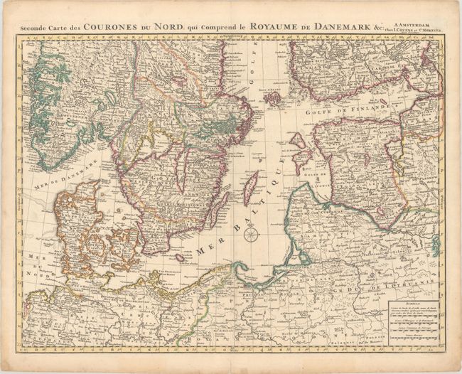 This handsome and intricately detailed map is the southern sheet of a two-sheet map of Scandinvia and the Baltic, but it stands alone with its own borders. It shows the nations surrounding the Baltic Sea, stretching from the southern tips of Norway and Sweden to the northern part of Poland. There is excellent detail of watershed and several towns and cities are located, including Oslo, Gothenburg, Copenhagen, Hamburg, Berlin, Gdansk, Vilnius, Riga, and Helsinki. The map is a Covens and Mortier re-engraving of Delisle's work. Second state, with both Covens and Mortier's name in the imprint.