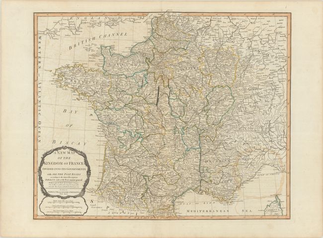 This beautifully engraved map portrays France as it was after the creation of the French Republic and the division of the country into departments in 1791. The map shows all the major roads and cities, and extends to show portions of Belgium, Switzerland, Germany, Italy and Corsica. Three cracks in the plate are visible around Orleans.