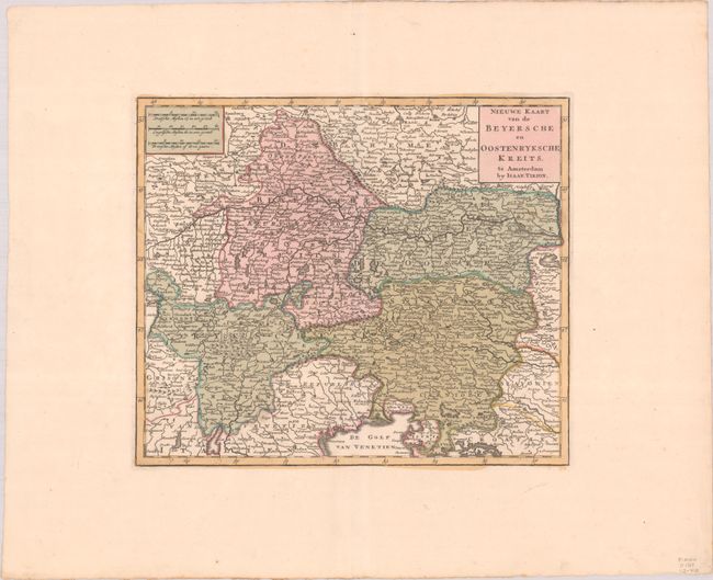 Detailed map of the region of present-day Austria, southern Germany, Croatia and northern Italy. The map extends west to Ulm, Germany and Chur, Switzerland, north to Prague, Czech Republic, east to Vienna, Austria, and south to Padua, Italy. The map is filled with political boundaries, cities, and rivers.