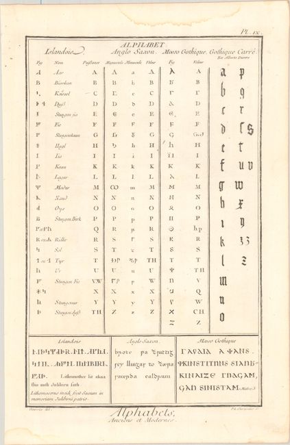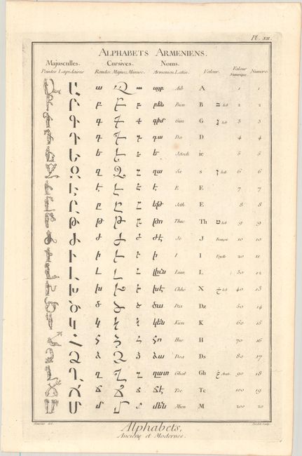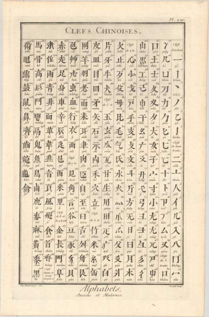 Great set of text and plates (34 leaves) from the first edition of this enormously influential work. The plates form a series of illustrations on the languages of the world. Seventeen text pages precede the 25 engraved plates that cover the alphabets, including Arabic, Ethiopian, Egyptian, Anglo-Saxon, Russian, Greek, Persian, Japanese, Chinese and several others. The Encyclopédie was published under the direction of Diderot with articles written by the most prominent philosophers of the time. These great minds collaborated in the goal of assembling and disseminating the fruits of accumulated knowledge and learning. Containing 72,000 articles written by more than 140 contributors, it was a massive reference work for the arts and sciences that served to propagate Enlightened ideas. Due to problems of censorship, the first edition was issued over a period of 21 years, in an original printing of approximately 4,000 copies.