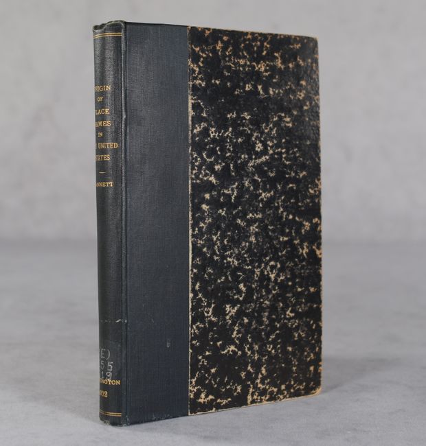 This is the rare first edition of this invaluable resource by Henry Gannett.  The book lists the origins of 10,000 places names in the United States, a remarkable act of compilation involving "a large correspondence" with "State and local historical societies, State, county, and township officer, and individuals in all parts of the country."  Finally the reader can stop pondering why Cuttyhunk is called Cuttyhunk - the island in Massachusetts is "a contraction of the Indian word Poocutoh-hunkunnok, 'thing that lies out in the water.'"  280 pages.  Hardbound in black cloth over marbled boards.