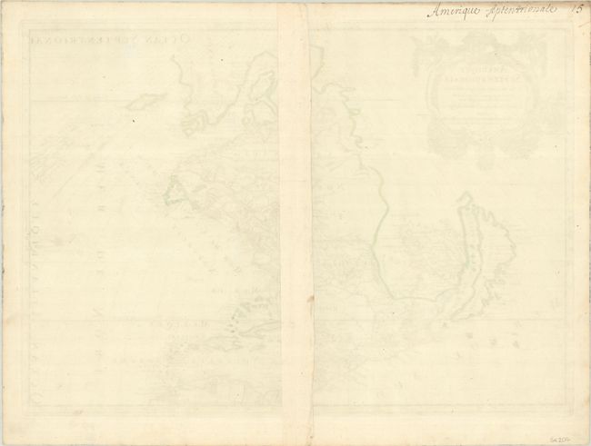 Handsome and important map by Guillaume Sanson, who in partnership with Pierre Mariette, based this map on his father's scarce 1666 wall-map of North America. This depiction replaced Nicolas Sanson's landmark map of 1650 in this atlas. Cartographically it is an amalgam of Sanson's maps of "Le Canada, ou Nouvelle France" and "Le Nouveau Mexique, et La Floride." The Arctic bears the confused cartography typical of this date, with Greenland shown as three islands, and another three island masses in Baffin Bay. The map extends to include Iceland, as well as much of Britain. Lake Erie is shown in a recognizable form and the entire Great Lakes network is shown in greater detail, although still with the western lakes open-ended. On the East Coast, Long Island is shown near the R. de Nort, or Hudson River, and the shape of the Outer Banks is improved. Delaware is noted as N. Suede, the first such place name on a printed map referring to the Swedish colony located there in 1638. The island of California is now shown with an indented northern coast, in the form originating with Luke Foxe's map of 1635 and popularized by Sanson. Several Indian tribes are identified in New Mexico where the R. del Norte (Rio Grande) mistakenly flows from an interior lake and empties into the Mar Vermeio ou Mer Rouge (Gulf of California). First state of this map.