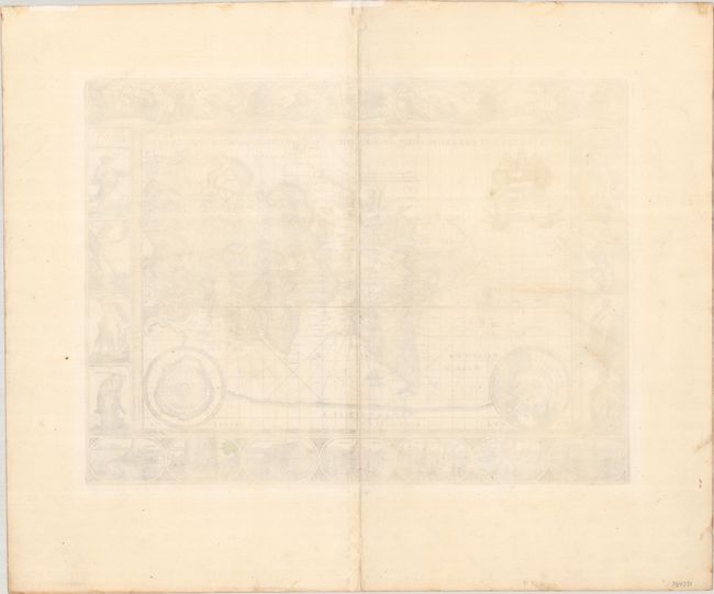 This beautiful map is one of the most intriguing examples of the internal workings of the map publishing business in the seventeenth century. The copperplate from which the map was printed was originally engraved by Pieter van den Keere (Petrus Kaerius) in 1608. It then passed into the hands of Jan Jansson in 1620, and finally to Jansson’s heirs who formed a partnership with the Englishman, Moses Pitt. The plate was reworked several times and a comparison of the various states provides a compelling view of the changing image of the world during the 17th century. In this final state, the classic carte-a-figures borders remain unchanged, while the map itself was updated with actual discoveries such as Australia, Tierra del Fuego and the straits of Magellan and Le Maire. Other changes reflect prevailing, but erroneous, theories such as an insular California, a peculiar isthmus linking Nova Zemla to northern Asia, and a revived huge Antarctic landmass. The map is very scarce because Pitt’s ambitious atlas project was a commercial failure, resulting in his confinement in debtor’s prison.
