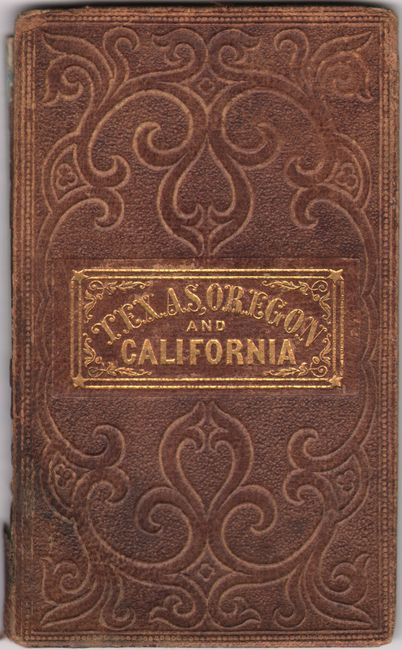 The lot includes the original 46-page booklet entitled Accompaniment to Mitchell's New Map of Texas, Oregon and California. The text describes each territory and state with notes on several early explorations. According to Wheat, “The Accompaniment is of particular interest, containing perhaps the clearest statement of Oregon and California facts that came out of the period just prior to settlement of the former's boundaries and inclusion of the latter in the United States." Brown leather front cover (3.1 x 5.2") with gilt title.