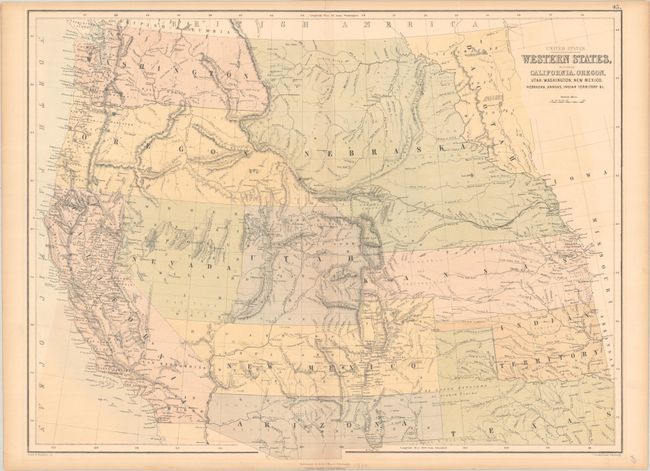This Scottish-produced map focuses on the early territorial configurations in the West. Washington and Oregon extend to the Continental Divide, and the huge Nebraska Territory spans from the Canadian border to the newly formed Dacotah at the Missouri River. The over-sized Kansas Territory stretches to the Rocky Mountains. The Confederate Territory of Arizona lies beneath New Mexico Territory, between Texas to California. Utah and Nevada have a rare configuration as the boundary line deviates from vertical near Sevier Lake and follows the Virgin River south-southwestward. The map is filled with detail including forts, Indian Lands, topography, watersheds, and more. Drawn and engraved by John Bartholomew. Using an early technique, it is " Printed in Colours by Fr. Schenck, Edinburgh."
