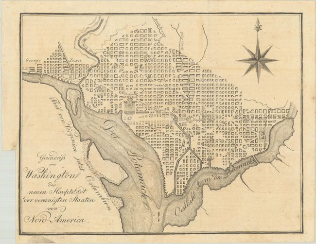 This charming small plan shows the city in good detail with the major streets named. The map locates the President's House, the Capitol, and Georgetown. A compass rose with fleur-de-lys appears at top right. An uncommon issue, not in Phillips, Maps and Views of Washington and District of Columbia, or in Baynton-Williams' Plans of Washington, D.C. (Mapforum, Issue 12).