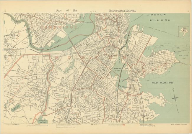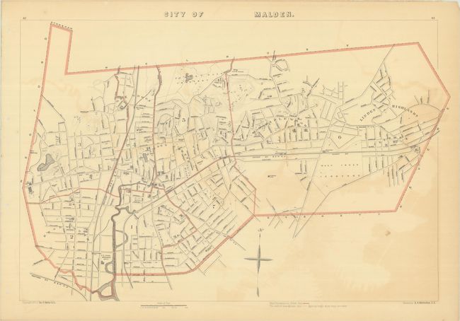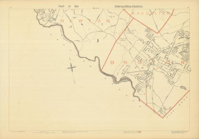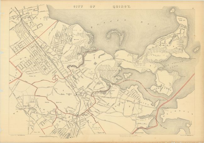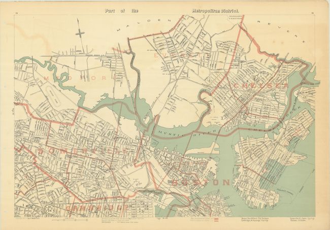 This group of maps was issued in the first edition of George Walker's uncommon Atlas of Massachusetts, and includes 6 sheets covering the entire City of Boston and vicinity as well as maps of the cities of Malden and Quincy. The maps present boundaries, roads, railroads, post offices, and buildings of public interest (churches, schools and cemeteries). Water features include islands, harbors, lighthouses, life-saving stations, and more. Cities and towns located include: all of Boston and parts of Cambridge, Waltham, Belmont, Watertown, Somerville, Medford, Newton, Brookline, Milton, Hyde Park, Chelsea, Everett, Malden and Quincy, along with many wards and neighborhoods. This first edition was published rolled with binding holes in the left margin as opposed to a centerfold.