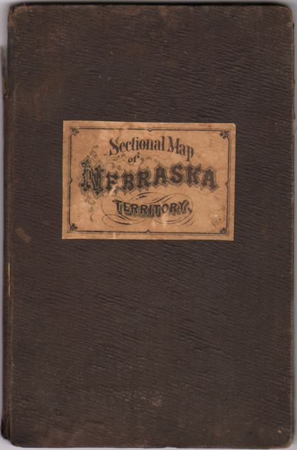 This rare, first-edition map of Nebraska Territory was compiled and drawn by Quin, Smith and Van Zandt in the Surveyor's Office at Lecompton, Kansas Territory. It extends from St. John's City south to Pawnee City and roughly centered on Omaha City (founded in 1854) and Council Bluffs. Only a fraction of the territory is depicted here, extending west approximately 50 miles in the north and about 100 miles in the south. County development is current to the publication date, with the creation of Johnson and Sarpy counties (among others). Settlement is confined to the area about 30 miles west from the Missouri River including Nebraska City, Bellevue, Plattsmouth and Brownville along with an early network of wagon roads. Three Indian reservations and two villages are noted on the map, including attractive illustrations identifying the Omaha and Ottoe reserves at top and bottom. The map was certified by L.A. MacLean, Chief Clerk, who noted that it "accurately and truthfully delineates with artistic beauty and nicety of detail all the topographical data found in the original notes." Drawn on a scale of 5 miles per inch. Lithographed by Leopold, Gast & Brother in St. Louis. Folds into brown cloth boards with title "Sectional Map of Nebraska Territory" on the front cover.