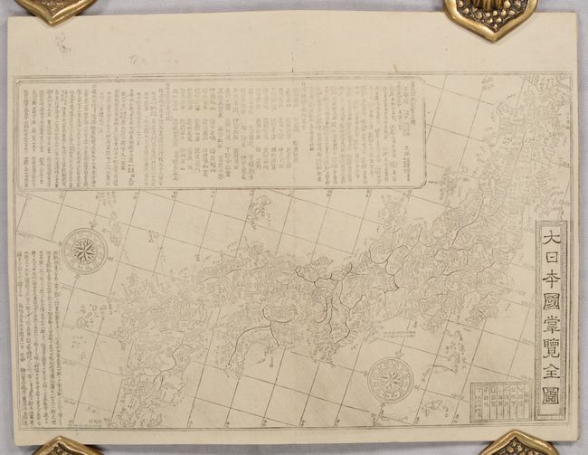 The eight pages of text within the gazetteer include information on fortune telling and several Banzuke (rankings) of Samurai swords and sword makers. The gazetteer has stiff paper covers.