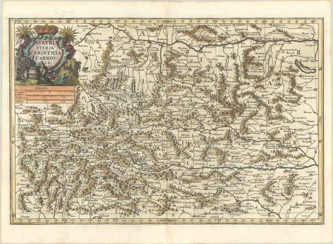 This fine, copper-engraved map shows most of Austria (with the exclusion of Tyrol) and extends to parts of northern Italy, Slovenia and Croatia. It is rendered in Scherer's crisp style, highlighting the rivers, mountain ranges and numerous towns. The decorative title cartouche features a vignette of mining and barrels of grapes. Dated 1699 but published in 1703.
