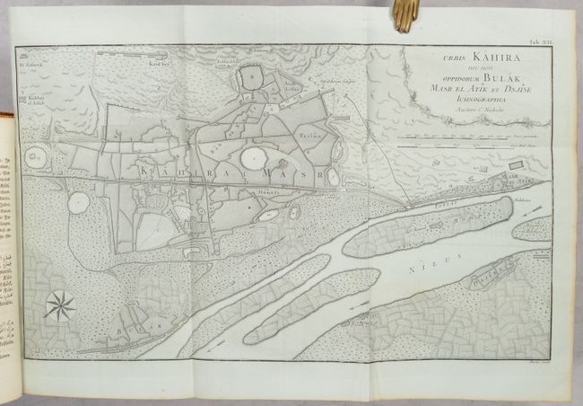 This is the complete first volume of Carsten Niebuhr's ground-breaking Reisebeschreibung nach Arabien. The German cartographer and explorer Carsten Niebuhr was the sole survivor of the six-man Danish Arabia expedition (1761-67). Upon his return, he wrote four books on his discoveries: Beschreibung von Arabien (1772) and the three volumes of Reisebeschreibung nach Arabien (Vol. I - 1774; Vol. II - 1778; and Vol. III - posthumously published in 1837). According to Ankary, "Niebuhr's expedition clearly represents a radical turning point in the way of studying the Arabian Peninsula and drawing maps of it." Indeed, his work deepened the European understanding of the region, and his maps set the groundwork for further scientific mapping. This volume covers the first couple years of the expedition, with stops in Constantinople, Alexandria, Cairo, Sinai, Jeddah, and around Yemen. The volume features 15 maps and plans on sturdy bluish sheets, including one large folding map, Tabula Itineraria Sistens Illam Partem Terrae Yemen... (15.6 x 18.4"). It covers the coast of Yemen from Loheaia (Al Luhayyah) south to Mocha, and spans inland to Damar (Dhamar). It also identifies several other towns and cities, including Sanaa and Hodeida (Al Hudaydah), locates the island of Kamaran, and features remarkable topographical detail. In addition to the maps and plans, there are 58 engravings showing views, local culture and dress, hieroglyphics, and more. German text. Published in Copenhagen by Nicolaus Moller. 506 pages. Rebacked in leather over contemporary leather boards.