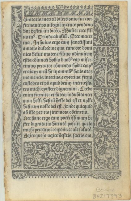 This buttery vellum leaf features a hand-colored image on verso of the Crucifixion of Christ alongside the beginning of the "Stabat Mater dolorosa," a hymn that is associated with the Stations of the Cross. It translates as: