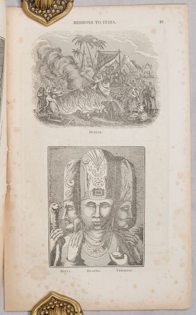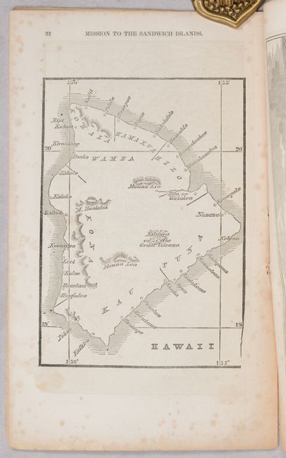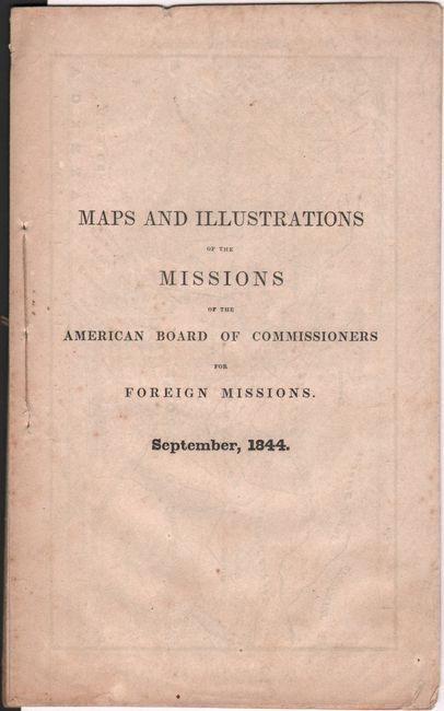 This is the scarce atlas volume that likely accompanied the 1844 Annual Report for the American Board of Commissioners for Foreign Missions. The volume contains 31 pages of maps and illustrations featuring missions in Africa, Turkey, Syria, Persia, India/Sri Lanka, Vietnam, Borneo, Hawaii and mainland United States. Within the United States, maps include the Ojibwa and Sioux Missions, Indian Missions West of the Mississippi, Oregon Mission and Hawaii (1 full-page and 3 half-page maps). The Hawaii section also includes two full-page views of Maui, one of Molokai, and one of Kailhua. Other engravings including seminaries, schools and native dress are interspersed throughout the text. Printed wrappers with original string ties.