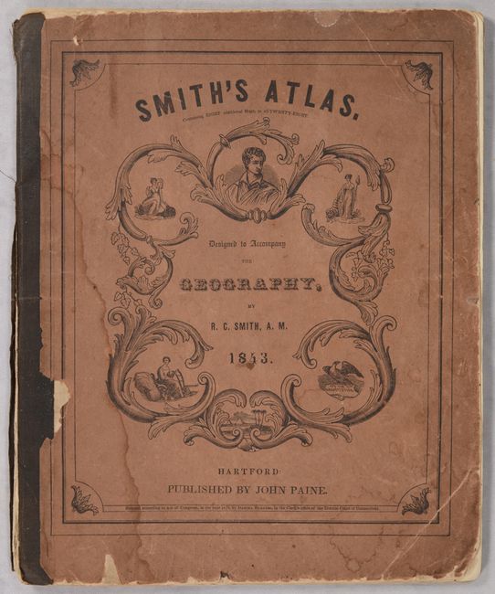 Condition code is for the maps, which have dark impressions and bright contemporary color. There is scattered foxing, some dampstaining at bottom and along some gutters, and a few maps have light toning. About half of the maps are loose. Covers are nearly detached and have moderate wear and dampstaining. The back cover has a large chip at upper left.